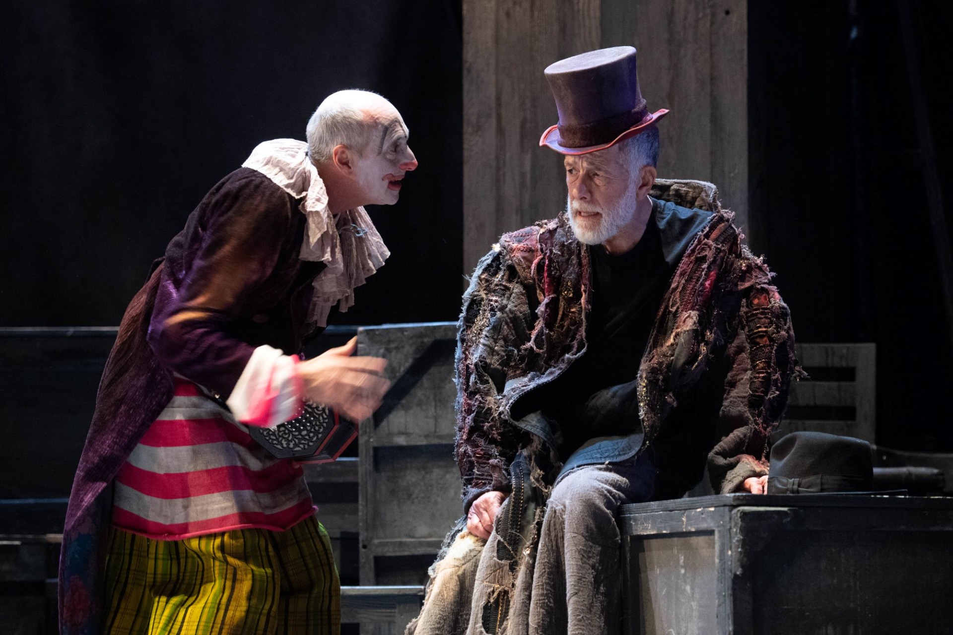 Si apre con l'ingresso degli attori, in borghese, che indossano palandrane da guitti senza tempo, e animano il palcoscenico ingombro di bric a brac teatrale, deposito scenografico di fondali e attrezzeria, il nuovo, ispirato Re Lear diretto e interpretato da Gabriele Lavia visto al Carignano di Torino nella stagione dello Stabile.